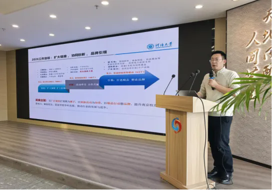 南京校友会副秘书长谢书磊介绍了南京校友会的组织运营情况,并提出了与在宁兄弟校友会协同发展的倡议。