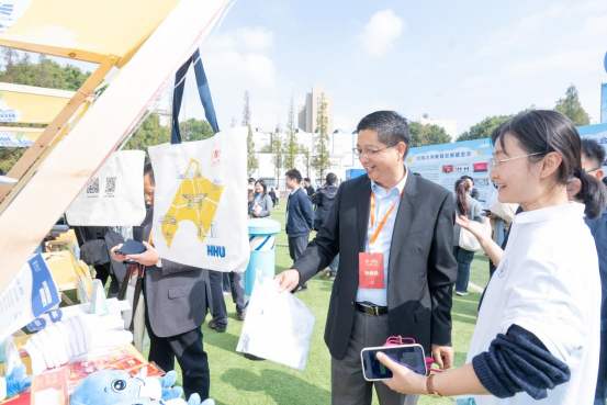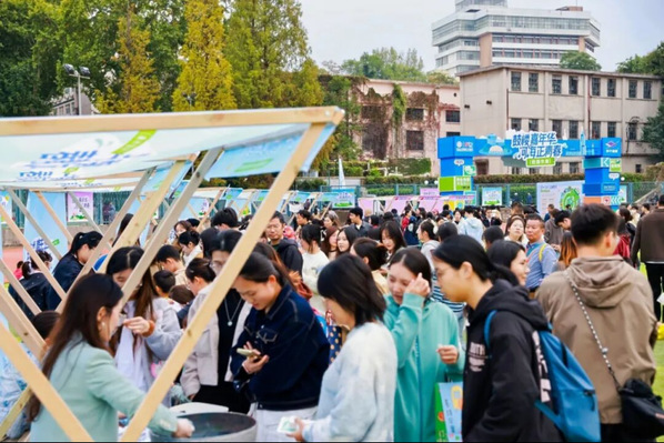 鼓楼区,南京主城核心区,科创聚集区。河海大学,百十载高校,肇始于鼓楼,与区域行业共成长。此次市集,是校地融合的生动实践——共同打造8大主题单元、70余个特色展位,成为“情感相连、资源互通、发展共谋”创新载体。“‘鼓’声传承”的文旅体验,“河海印记”的校地联动,再加上依托河海大学校友会组织的河海校友看鼓楼活动,“校地共生”从概念变为可感的体验。推介学校帮扶对象石泉县的特色产品、生态旅游和产业发展,在高校赋能“乡村振兴”上持续发力。