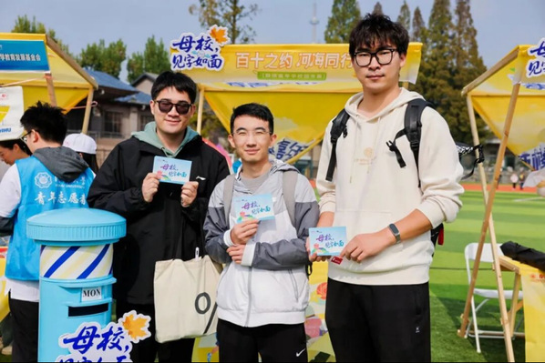 2天沉浸式体验、1000+张载满祝福的明信片和纷沓而来的校友师生,那份共同的河海青春印记是最大的留念。“校友记忆墙”前,校友望着泛着时光印记与刻着青春记忆的照片念起往事;“母校,见字如面”互动区,校友们提笔书写感怀与祝福;河海大学校友会与教育发展基金会专区成为连接校友爱心与学校发展的最美驻足点。“百十校庆·你我文创”,从融合校徽元素的精致文具,到展现校园风貌的文化衫、纪念册,把河海独特标识赋予了特殊艺术创意,承载着百十河海记忆与文化,触动起校友最忘不了的心灵角落。
