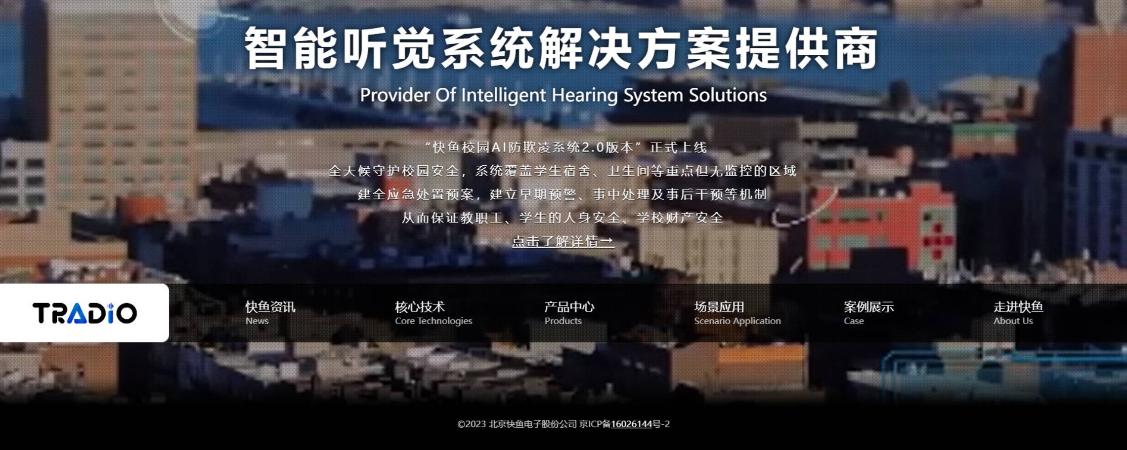 北京快鱼电子股份公司(以下简称“快鱼电子”)成立于2001年,并于2016年8月挂牌新三板并于2020年跻身新三板创新层[股票代码:838168],目前为主要从事安防音频产品、智能语音分析产品、音频解决方案的研发、生产、销售。公司共拥有49项专利,包括10项发明专利、21项实用新型专利、20项外观专利以及74项软件著作权,先后获得“中国安防协会理事”、“美国安防协会会员”、“中国监所推荐品牌”、“Intel软件合作伙伴”、“十大监控系统品牌”“中国安防十大视频监控品牌”“北京市专精特新中小企业”“北京市专精特新小巨人”等诸多荣誉称号。公司是安防音频监控细分领域的先进企业,该领域融合声学技术、音频分析和软件开发等多领域交叉技术。公司在音频监控领域具有较强的技术积累和先发优势,拥有自主知识产权的高级音频处理技术,能达到与DOLBY杜比降噪系统、杜比环绕声系统、杜比全景声的近似效果。公司基于在安防行业领域二十余年的技术和市场积累,有快速的场景应用实施能力,依靠自有研发团队开发出适合于不同现场环境的上百款音频产品,为客户提供各种专业的音频解决方案及相应的配套服务,以满足不同行业领域的实际需求。在语音判别、语音美化、语音萃取方面,快鱼电子还拥有独特的专利技术,可以推广到目前公司还未涉及的通讯行业、网络直播等领域。此外,快鱼电子的人工智能音频技术处于业内当先水平,在谷歌组织的DCASE2019声音场景分析比赛两项任务分别排名第4名、第11名,居全球614个队伍的前列,公司自研的各种高级音频处理软件和自研的多项智能音频分析技术和软件都处于国际当先水平,同时具有这两种能力的企业并不多见。作为一个全面发展的高新技术企业,公司大胆创新,努力进取,历经二十余年专业研发与探索,在音频处理及通讯领域积累了丰富的经验,品牌“TRADIO”享誉国内外。公司设计生产的音频监控产品及智能语音分析产品,通过国家强制性产品认证,取得欧洲CE标准认证、美国FCC标准认证、UL认证等国际认证,在民用监控、通讯领域达到行业当先水平。公司研发的神经网络语音降噪技术、立体空间声音定位技术、人声检测及声纹识别技术、情绪识别技术、异常声音分析技术等,均已有了很好的应用,未来的应用场景会越来越多。公司主要产品为高端拾音器、语音增强软件、音频综合管理服务器、智能声音分析平台、公共广播系统、语音报警及对讲设备等,用户已遍布全国,在公安监所、司法、金融、平安城市户外、教育、政务及工业、民用、航空、军事等行业均得到大量成功应用。快鱼电子长期从事安防音频核心技术研究并始终保持行业前沿技术水平,近年来坚持“智慧化”发展战略,积极投身智能听觉技术开发,推动智能听觉技术在各行业的应用落地,致力于让声音不仅“听的见”、“听得清”,还能“听的懂”,深入探索智能听觉技术下的新模式和新业务,使得公司产品在全国安防行业内具有很高的声誉。快鱼电子秉承锐意进取、创新务实的企业理念,秉承真诚服务,共谋发展的服务理念,在音频处理及通讯领域不断精耕细作,脚踏实地的走到了行业当先地位,不仅为公用、民用的产品用户创立了安防行业的新标杆,更在专业领域里以深厚的实践基础奠定了未来创新发展的无限可能。挂牌新三板之后,在新的资本运作模式下,北京快鱼电子股份公司将迸发出更强健的活力,以“诚信、协作、创新、务实”的理念继续服务于全国的产品用户,以专注、专业、坚定的态度勇于面对新的机遇和挑战,以技术过硬的产品和创新研发持续推动行业进步,为安防行业与音频通讯领域的蓬勃发展贡献出更坚实的力量。